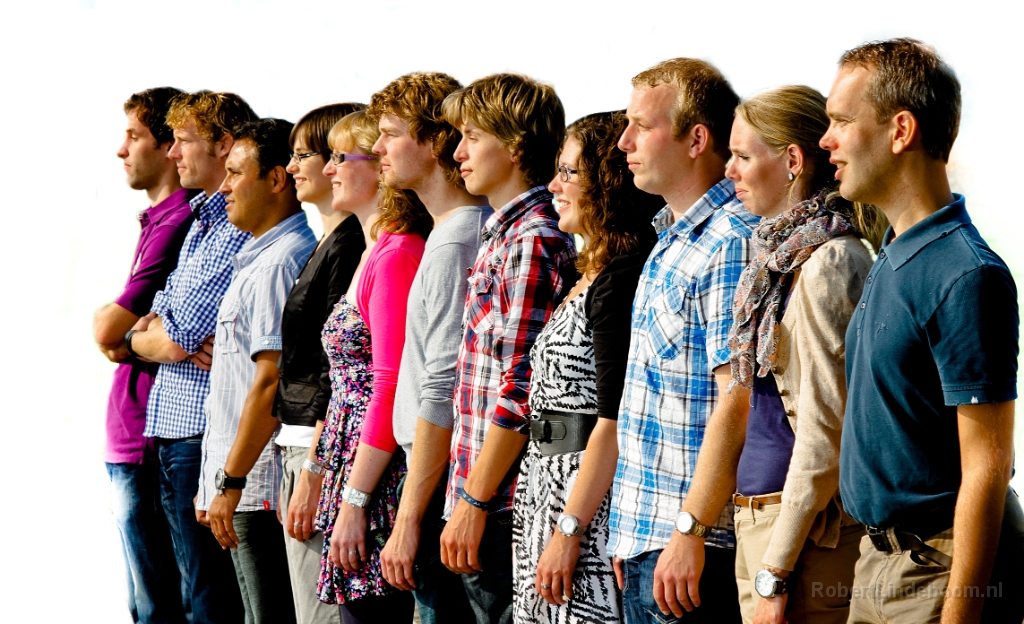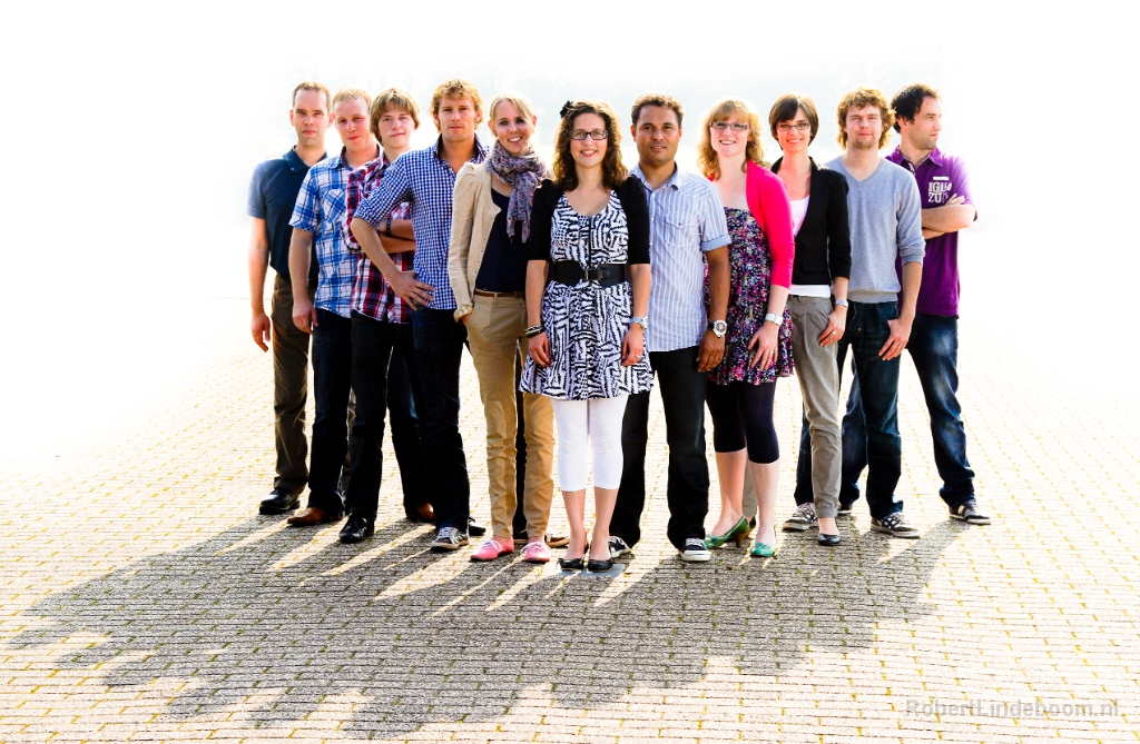10Groepsfoto BandJoy.nl Fotoshoot voor de website van de band 'Joy' uit Den Ham, Overijssel (www.bandjoy.nl). Gemaakt bij laagstaande zon die voor de bandleden van voren kwam. Twee flitsers werden vanuit de richting van de camera op de band gericht.
