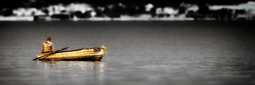 6Visser Deze man heeft zijn anker voor de haven van Fethiye (Turkije) neergelegd om wat vis te vangen.