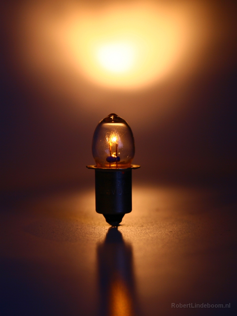 32Draadloos licht Een experimentje. Het licht van het (draadloze?) lampje is het enige.