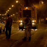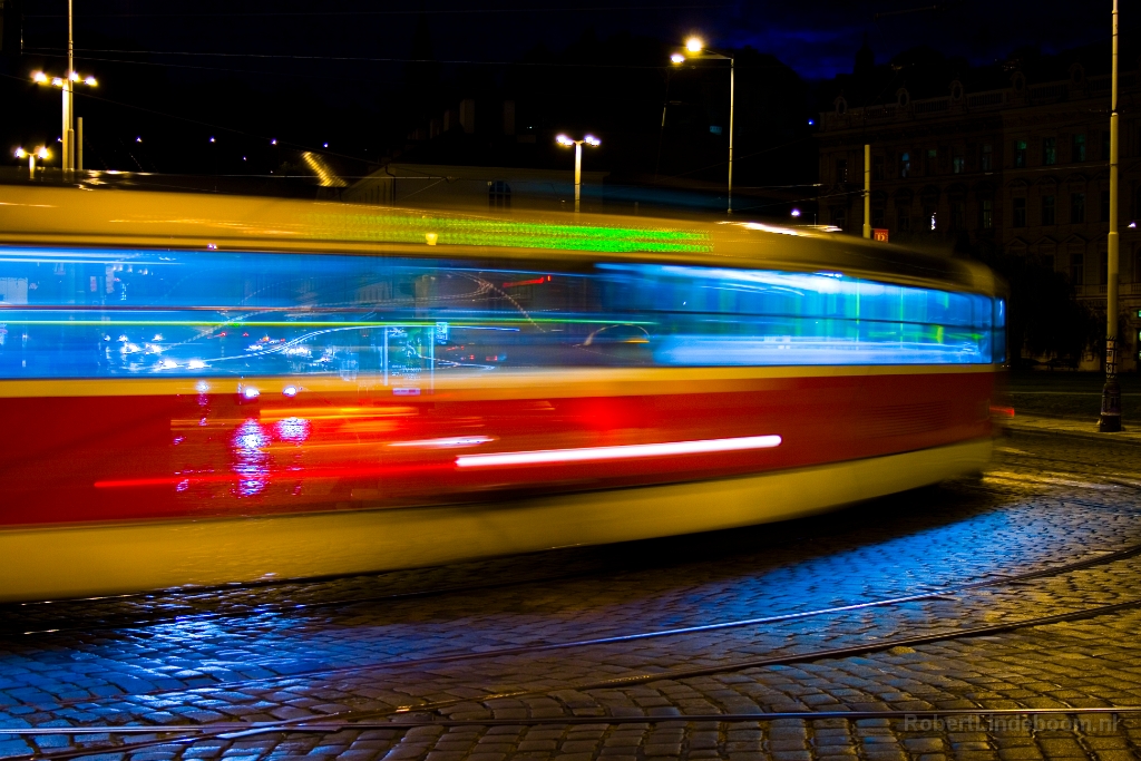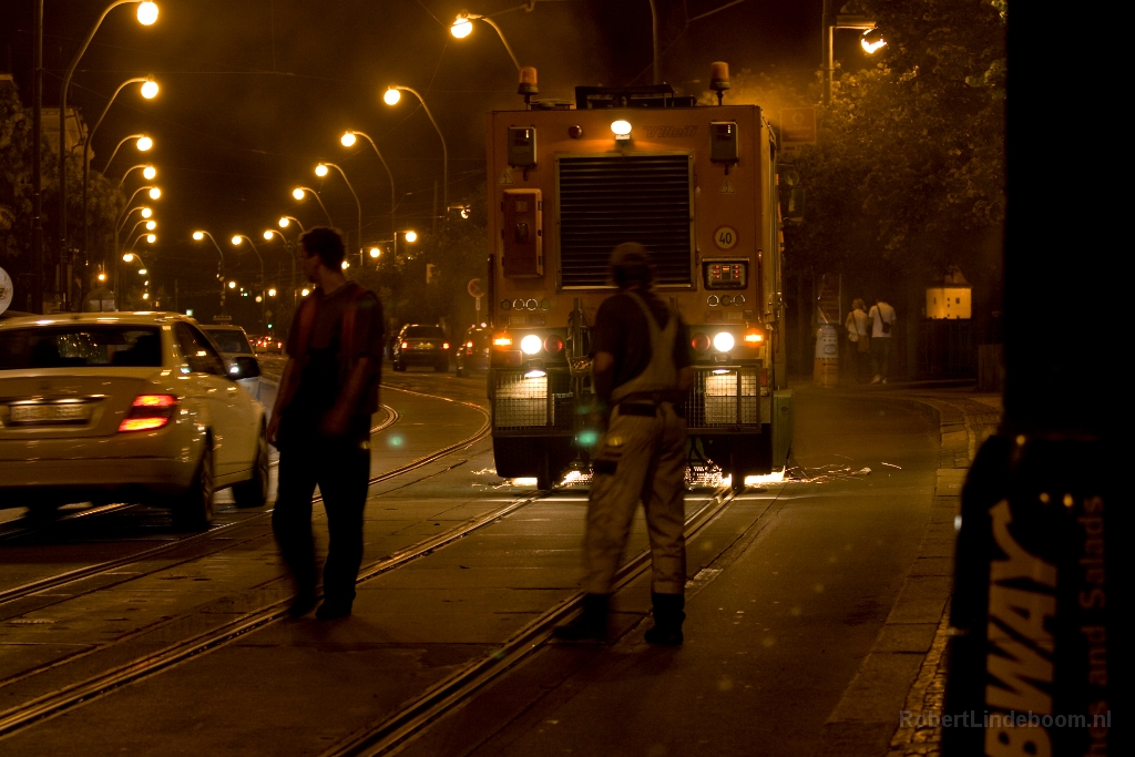 22Werk in uitvoering Een apparaat dat in Praag de tramrails slijpt.