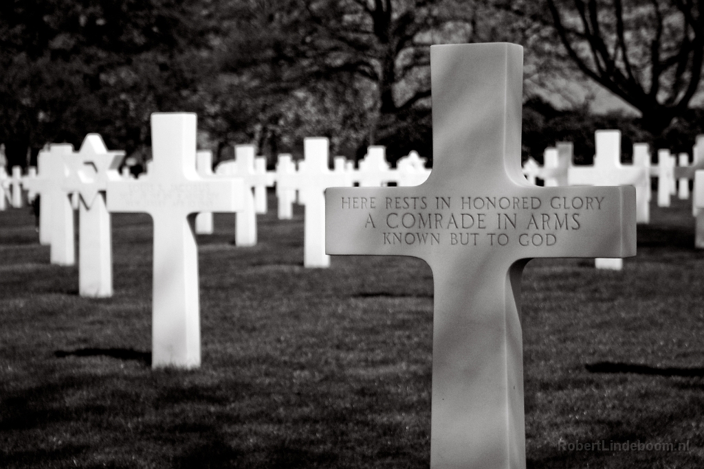 27Known but to God Op de graven van (Amerikaanse) soldaten die in de oorlog gesneuveld zijn maar waarvan de naam niet bekend is, staat deze tekst ("Here Rests in Honored Glory a Comrade in Arms Known But to God"). Twee graven naar links het gedenkteken voor een Joods-Amerikaanse soldaat.