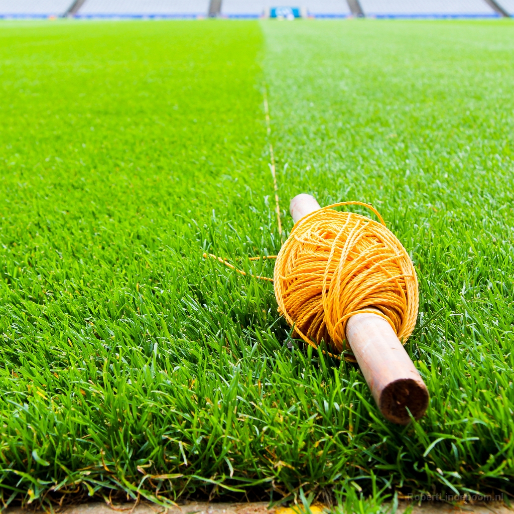 13Richtlijn Het koord waarlangs de medewerkers van het Croke Park stadion te Dublin met hun ('hand'-)grasmaaier de banen in het veld maaien.