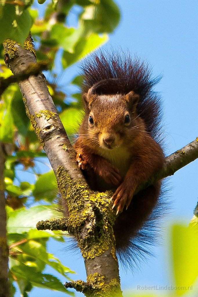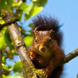 18Eekhoorn Bij ons in de achtertuin zat dit eekhoorntje in de kersenboom. Doordat het mijn aandacht kreeg, keek het ook heel aandachtig naar mij.