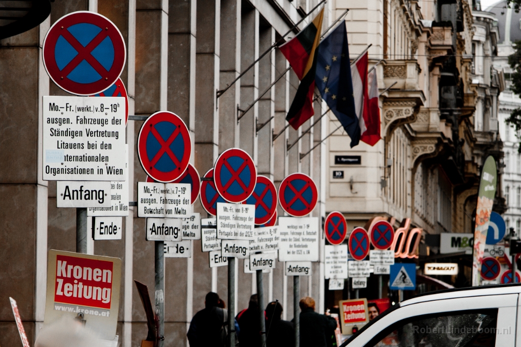15Parkeerchaos Tegenover het operagebouw in Wenen staan deze borden die voor elke parkeerplaats de regels aangeven (Anfang) en tot waar ze geldig zijn (Ende).