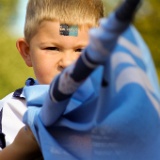 12Dublin GAA-supporter Een kleine Dublin GAA-supporter na de nationale Hurling kwartfinale in het Croke Park stadion.